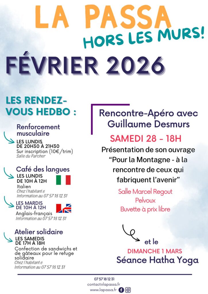 Accueil En février avec La Passa C’est parti pour 2026 ! Le programme d’octobre est arrivé ! Ca se passe en septembre ! En août avec La Passa Hors Les Murs Levée de fonds citoyenne pour La Passa A-Venir ! En juillet avec La Passa Juin 2025 : demandez le programme ! Assemblée Générale ! En mai avec La Passa